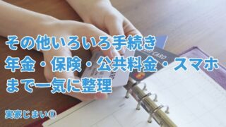 最初に読んでほしい9記事 実家じまい⑧-その他いろいろ手続き|年金・保険・公共料金・スマホまで一気に整理 実家じまいで必要な細かい手続きを一覧化。年金・保険・銀行口座・公共料金・スマホ解約まで、忘れがちな流れを整理しました。 2025.09.30 最初に読んでほしい9記事
