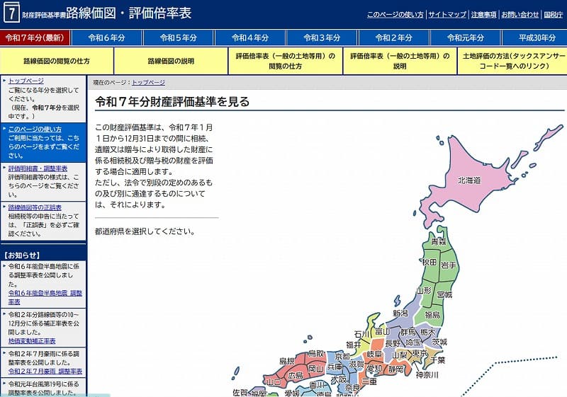 国税庁|財産評価基準書路線価図・評価倍率表 のページへアクセスして、